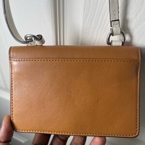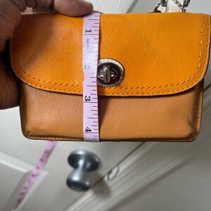 Stylish Coach crossbody bag. Features vibrant yellow and rich brown colors. Perfect for any occasion.