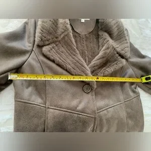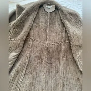NWT Via Spiga Faux Fur Coat: Dark Taupe, Fir Lining, Pockets, Button/Snap XL