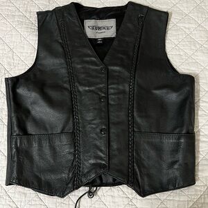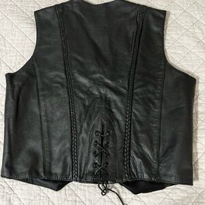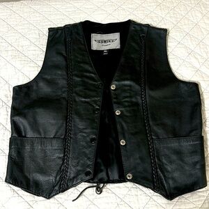 Unik Men's Vintage XL Lined Black Leather Chopper Vest EUC