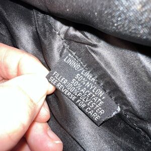 This is a men's XL black leather chopper vest by Unik, designed for motorcycle riding. It features a solid pattern with snap accents, lined with acetate and insulated with polyester. The vest has pockets and is suitable for winter, fall, and spring seasons. Made of leather fabric, it is a biker style vest from Pakistan.