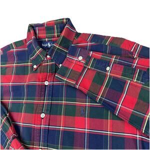 Ralph Lauren Men’s Button Down Shirt Size Large Red Green Navy Tartan Plaid 100% Cotton Classic Fit