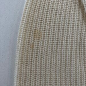 Minor flaws - please see last few photos, there a few light stains, however due to the nature of the knitted fabric, very easily could be removed with dry cleaning.
