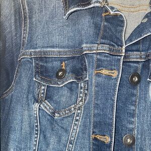 This Torrid jean jacket in a classic blue hue is a timeless addition to your wardrobe. Its trucker-style design and regular fit offer a comfortable and stylish look for any casual occasion. The medium blue denim wash with slight fading adds a touch of vintage charm.