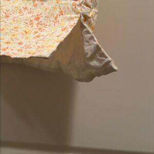 Lovely orange yellow skirt with a delicate floral pattern, perfect for any occasion. Front slit pockets!