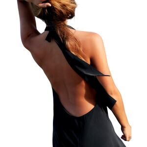 Zara Women's XSmall Black Halter V-Neck Top Open Back Sleeveless Midi Dress
