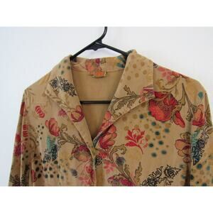 Tianello Medium Women's Tan Floral Printed Button Up Long Sleeve Blouse