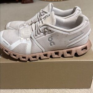 Experience comfort and style with On women's athletic shoes. Featuring a sleek cream and tan design, these shoes are perfect for any workout or casual outing.