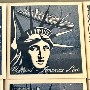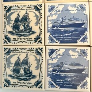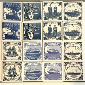 Holland America Line Delft Blue Tile Coasters Lot of 16 Pieces Cork Back Pairs