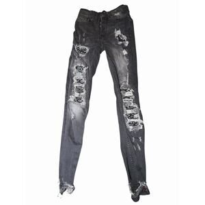 boohooMAN Distressed Skinny Jeans Black Bandana Patchwork Size 28 X 30