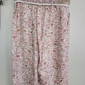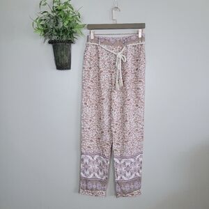 Anthropologie Ollari Tapered Tassel Rope Belt Leopard Paisley Print Pants. They are brand new with tags. Size small and made of 100% viscose. A rope tassel belt, side pockets, rolled cuffed bottom, tapered leg. Pull on styling with elastic along the back side of the waist for a great fit. The color is listed as mauve, but looks brown and purple over ivory to me. Smoke free home.