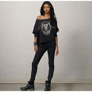 Denim & Supply Ralph Lauren Cowgirl Western Skull Cropped Sweater Black Medium