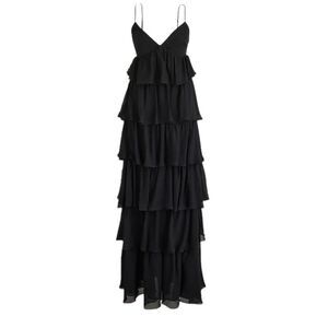J Crew Collection ruffle-tier dress in chiffon Womens Size 8 Black