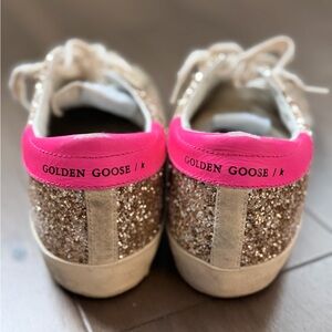 Golden Goose Gold Glitter Super Star Sneakers with Neon Pink