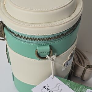 Stylish women bag in a chic green and cream design. Perfect for casual outings.