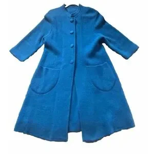 Celine Modele Depose Wool Cashmere Blend Sweater Coat Stunning Blue Buttons L