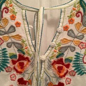 Johnny Was White Floral Embroidered Tunic