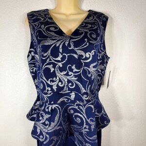 En Focus Studio Navy Blue Sleeveless Peplum Pencil Dress Size 14 NWT
