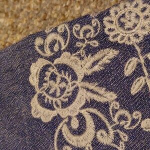 Women's size S THML Anthropology linen/cotton blend palazzo pants. These pants feature really beautiful embroidery details along the hem of each pant leg, with drapey slits up the front. The waistband is flat on the front with elastic on the back. Excellent condition. Measures 13.t" flat across the waist with a 9.5" rise and 26" inseam. The slit on the front goes up about 11.5" from the hem.