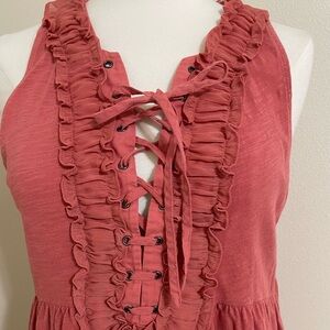 ANTHROPOLOGIE Sienna Deletta Ruffled Lace Up Bodice Sleeveless Top Sz Medium