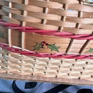Handwoven Sleigh Basket Hand Painted Holly Band Cozy Cottage Holiday Decor