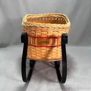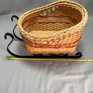 The curved sleigh form and hand-painted holly detail give this piece a soft, nostalgic holiday presence suited for a mantel, table, or seasonal display. Made by a talented basket maker personally known to the seller.