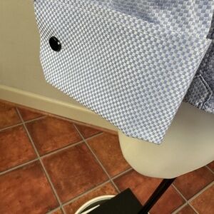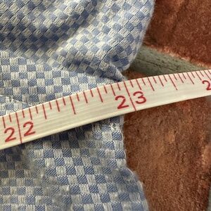 One-of-a-kind and made in San Francisco, this shirt is soft, decadent, and striking. It also comes with the original cuff links that were designed for daily use. The monogrammed initials toward the bottom don’t detract, off-center on the left side. The checkered blue pattern adds a refined touch that stands out.