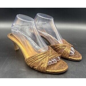 MICHELLE D Womens Gold Copper Metallic Slide Slip On Heeled Sandals Sz 8.5