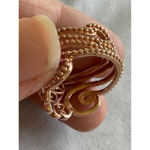 The FAS 925 Sterling Silver ring in size 8 features a delicate filigree heart design, making it a lovely addition to any jewelry collection. With its sterling silver construction and intricate detailing, this estate jewelry piece exudes elegance and sophistication. Perfect for those who appreciate fine jewelry with a touch of vintage charm.