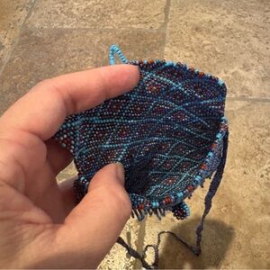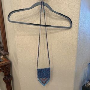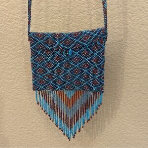 Pre-owned in great condition with no rips or stains. Stylish beaded blue and burgundy pattern fringe mini bag. Perfect for adding a unique touch to any outfit. Comes from smoke and pet free home.
