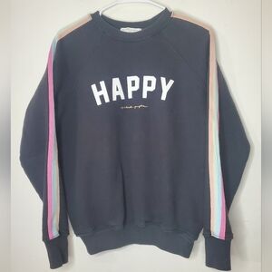 Spiritual Gangster Happy Spellout Sweater Size Small Colorful Arm Striping