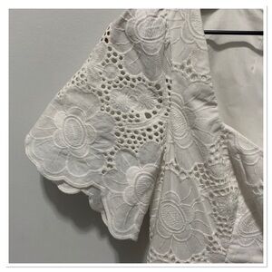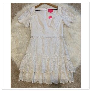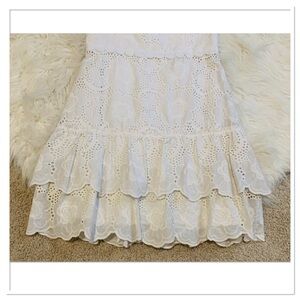 White Floral Eyelet Zip Up Back Tiered Ruffle Scalloped Hem Short Sleeve Lined Bonnie Dress In Jumbo Bouquet Eyelet Resort White By Lilly Pulitzer Size 2