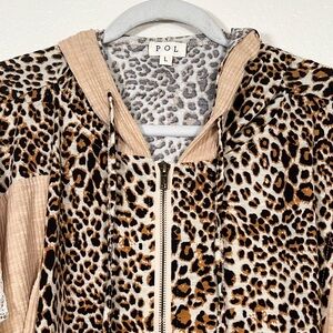 POL leopard and floral lace zip up hooded top, size large