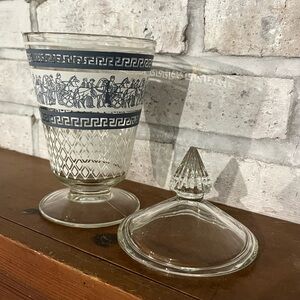 Vintage Mid Century MCM 50s Patrician Blue Jeannette Jar With Lid Greek Venetian Style