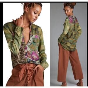Pilcro Camo Animal Print Mixed Print Button Down. Small