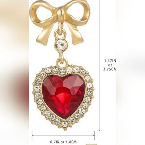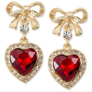 Add a touch of elegance with these stunning earrings. Featuring vibrant red heart-shaped stones and a charming gold bow, these earrings are perfect for any occasion.