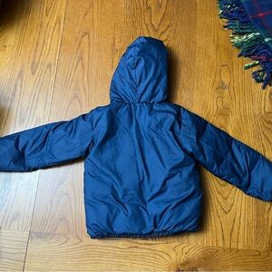 Cozy blue down puffer coat for toddlers. Ideal for outdoor adventures.