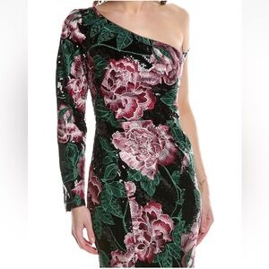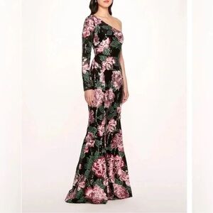 Brand NEW stunning Marchesa Notte Floral Embroidered One Shoulder Sequin Gown - Size 2! MSRP $995