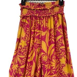 Patrons of Peace Angelo Wide-Leg Smocked Pants Pink Bird Floral M