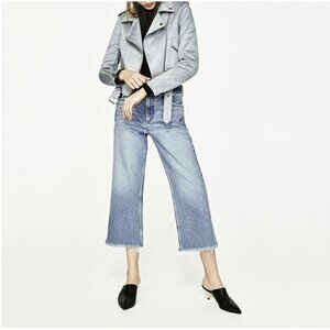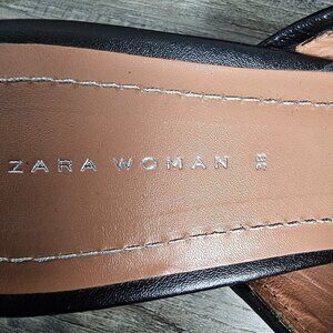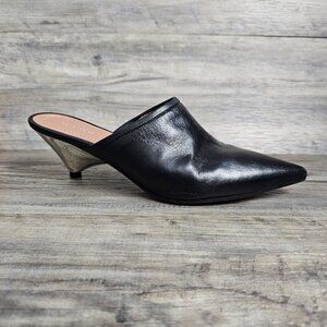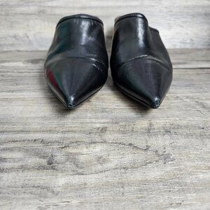 Zara Leather Black Slip On Metallic Silver Kitten Heel Mules Size 38 (7.5)