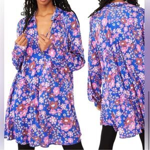 Free People Daisy Jane Botanical Floral Mini Dress Blue Pink XS FLAW