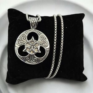 celtic knot necklace, triquetra pendant, trinity knot jewelry, celtic cross medallion, irish heritage jewelry, viking style necklace, norse jewelry, mixed metal necklace, spiritual symbolism, pagan jewelry, christian necklace, witch knot, vintage inspired jewelry, unisex pendant