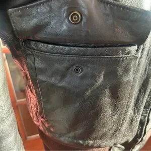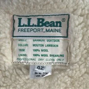 The Vintage LL Bean G-1 Goatskin Leather Bomber Flight Jacket in size 42L is a stylish and classic outerwear piece for men. Made with durable leather and lined with warm nylon, this short-length jacket features a quilted design accent, zip closure, and a solid brown color. The bomber style, regular fit, and vintage L.L. Bean brand add a touch of nostalgia and sophistication to any outfit. Perfect for a timeless, rugged look, this jacket is a versatile addition to any wardrobe.
