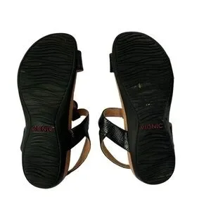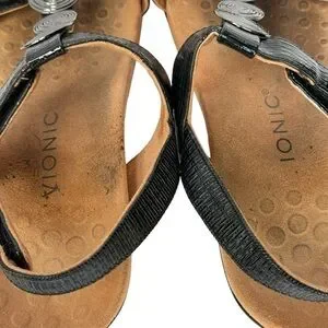 Women's Vionic Farra T-Strap Sandal Black Woven Synthetic SZ. 8