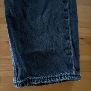 Distressed busted knee 5 pocket jeans. Black wash. Broken in and soft! Button and zipper closure. Cotton / elastane blend. . Machine washable. Size 10 short
