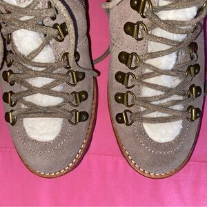 Jeffrey Campbell Gray Suede Lace Up Boots Sherpa Culvert White Cream Beige 6.5 8