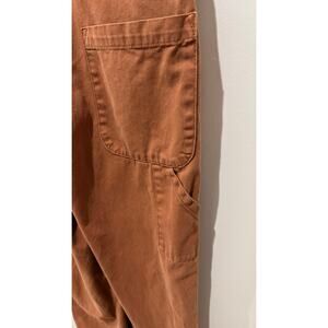 Pistola Denim Grover jumpsuit in the sold-out cinnamon colorway, size XXS. This rich auburn brown shade is perfect for fall and winter styling and is no longer available in this color or size. The Grover is a flattering, workwear-inspired one-piece featuring adjustable shoulder straps and a front button closure. It can be worn cinched at the waist for a more defined shape or left relaxed for an effortless fit. Made from 100% cotton with a structured yet comfortable feel. Size XXS. For reference, this fit perfectly on a 5’2”, approximately 100 lb frame with a 24" waist. There is a tiny pin size light mark on the shoulder which is pictured.
