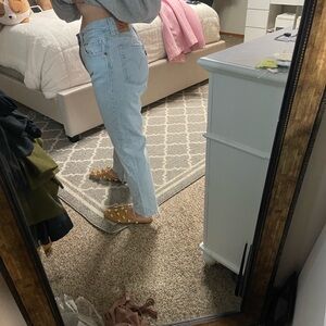 Classic straight leg fit. Light blue denim. Timeless Levi's style. Like new. Ship same day or next. I’m 5’1” and 128-130 lbs for reference. These jeans were a size 28x32 but they were super long on me so I cut them to my height. So they are a 28x30 approximately now