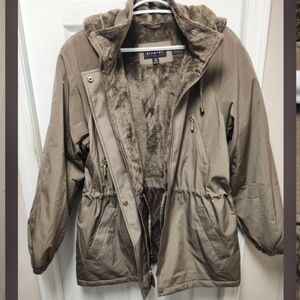 🌼 Braetan hooded coat. Easy care polyester, detachable lined hood, faux fur trim on hood, adjustable drawstring waist, front pockets- 2 with zippers, elastic cuffs.