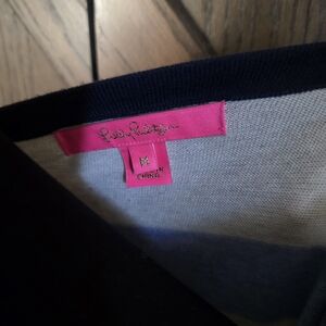 lilly pulitzer navy and light blue striped sweater featuring tassel details. Perfect for a cozy look. size medium. excellent condition.