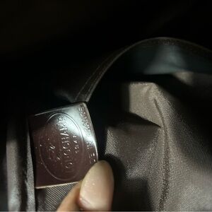 Elegant Longchamp briefcase in dark brown. Features textured front pockets. Ideal for business or travel.